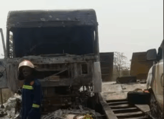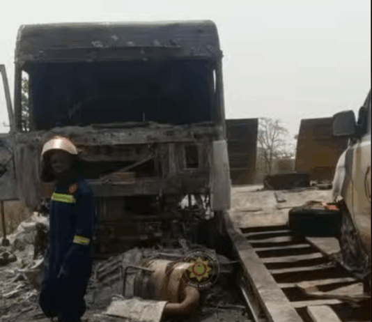 Two trucks transporting a Hyundai van and 1,000 bags of cement were gutted by fire at Buipe in the early hours of Sunday, February...