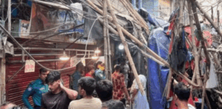 A morning fire on Wednesday, November 19, 2025, destroyed a commercial container shop at Agartha Market near the National Ambulance Service office in Koforidua.