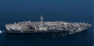 An Iranian drone was shot down as it "aggressively approached" an American aircraft carrier in the Arabian Sea on Tuesday, a US military spokesman...