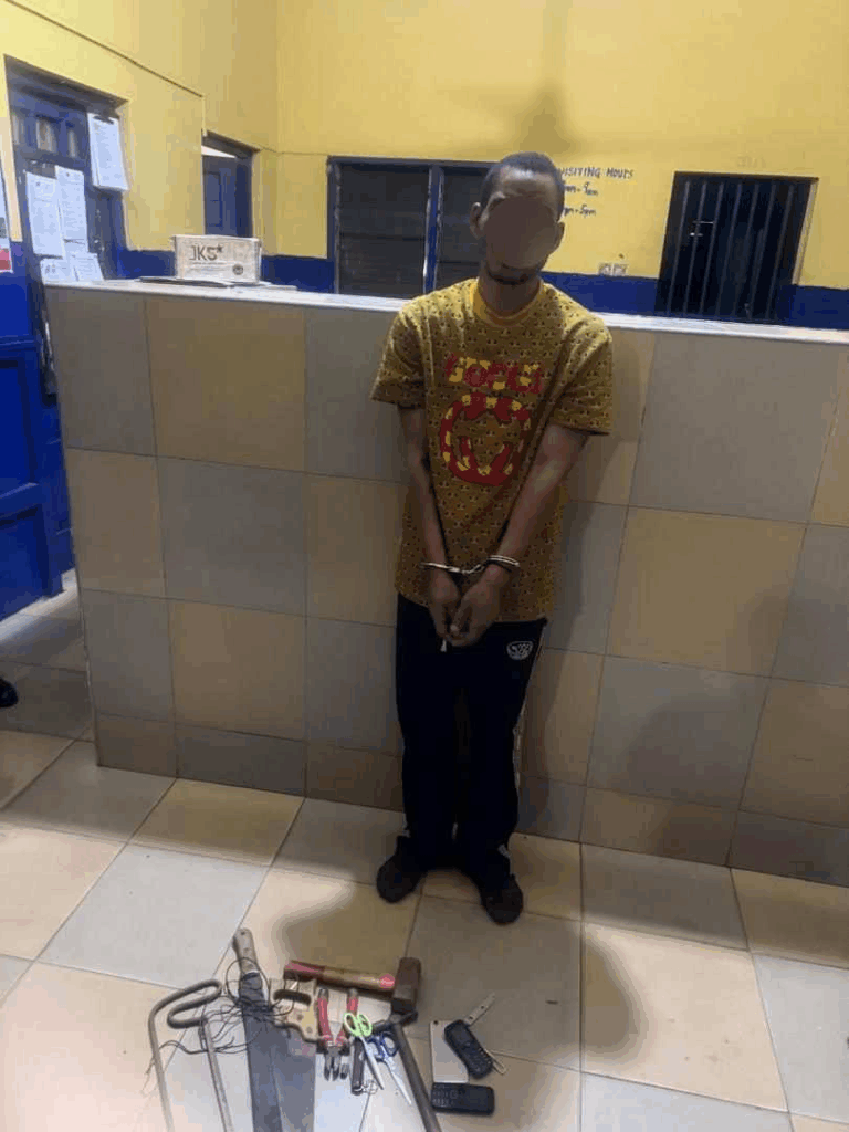A search conducted at Mohammed’s residence in Abokobi uncovered several items believed to be linked to criminal activity, including a cutter, two pairs of scissors, two hammers, a hacksaw, a cutlass, a jack knife, a saw and three mobile phones.