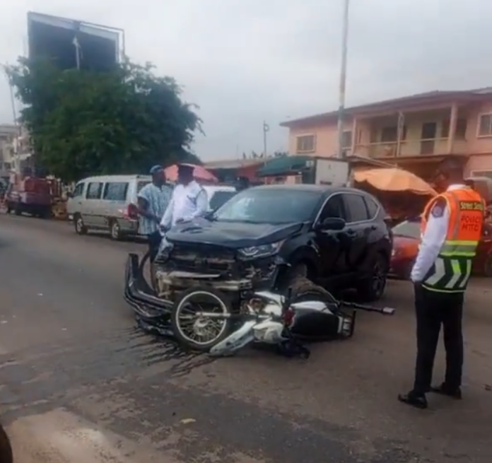 A police officer has sustained critical injuries following a serious accident involving a Black Honda CRV and a police motorbike in Pataasi, a suburb of Kumasi.