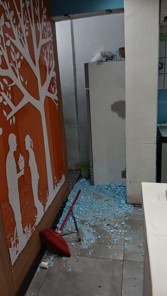 After the wedding, the Eyisam youth reportedly moved to the Accra lorry station to confront the alleged attacker. A person was identified to them as the suspect, prompting a chase into a nearby chicken shop close to the Shell fuel station. In the process, one of the glass doors at the shop was broken before the group retreated.