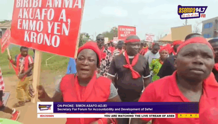 Cocoa farmers in the Western North Region staged the demonstration to press home their demands, urging government to act swiftly and ensure fair treatment for the farming community.