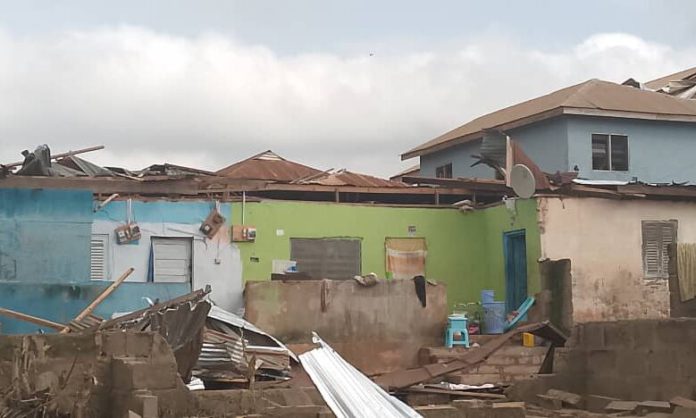 The rainstorm according to reports by Kumasi-based OTEC FM collapsed five houses while the roofs of several houses were ripped off.