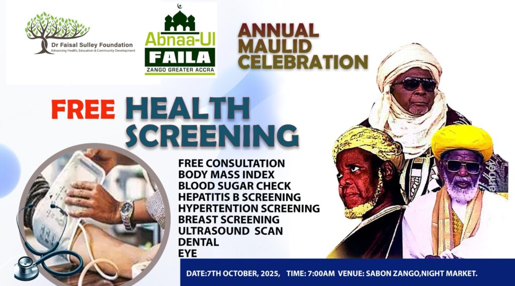 Specialist obstetrician-gynecologist and social activist Dr. (Med) Faisal Sulley, who is the founder and head of Rayan Medical Centre located at Asore Danso, near Dansoman in the Greater Accra Region and founder of Dr Faisal Sulley Foundation said the free screening formed part of the clinic’s vision of always ensuring it serves the needs of the community and its people.