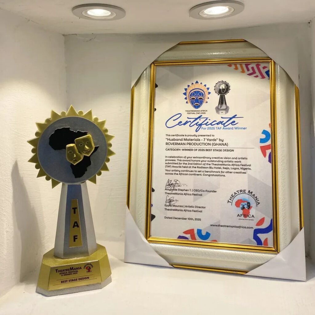 Roverman Productions says the recognition adds to its commitment to continue delivering compelling stage productions that keep live theatre vibrant in Ghana and beyond.