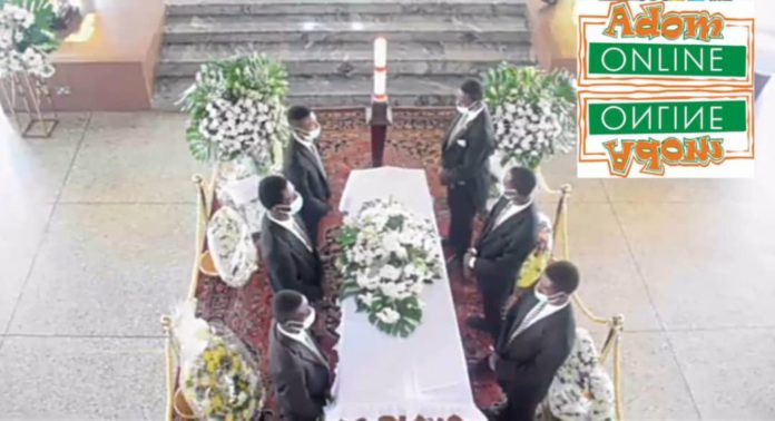 The filing past and burial service started at 7:am at the St Thomas Aquinas Catholic Church, University of Ghana, Legon.