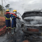 Commuters on the Techiman–Sunyani road were left stunned when a Ford Transit bus suddenly caught fire at Faaman.