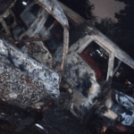 Two Hyundai H100 vehicles were engulfed in flames following a head-on collision at Apark Zongo, near Sir Teeray’s Complex, around 10:05 p.m.