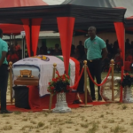 Family members and colleagues of Manasseh Sackey, who died while on campaign trail as his casket was moved away for burial.