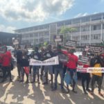 Supporters of the 'New Force movement' have gathered outside the Kaneshie District Court in solidarity with their spokesperson, Shalimar Abbusi.