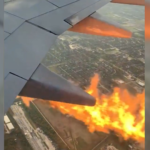 This is the terrifying moment flames shoot out of an airplane engine moments after take-off.
