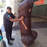 A Brazilian man dressed as a giant 7ft penis has been arrested by police after women complained he had been harassing them.