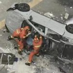 Electric car kills two after falling from an office