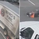 Moment thief accidentally sets himself on fire after trying to siphon gas from truck