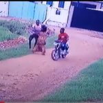 Two men have been captured on CCTV camera attacking a woman at gunpoint in broad daylight robbery.