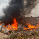 A fire erupted behind the VVIP Station at the Kwame Nkrumah Circle in Accra on Tuesday, January 20, 2026.