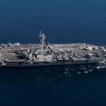 An Iranian drone was shot down as it "aggressively approached" an American aircraft carrier in the Arabian Sea on Tuesday, a US military spokesman...