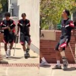 Manchester United defender Leny Yoro has been seen wearing a protective boot and using crutches at the club’s UCLA training base.