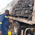 A MAN TGX26 trailer transporting bottled water caught fire on Wednesday, June 11, at Suhum Mile 44 on the Accra-Kumasi highway.