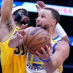Stephen Curry scored 37 points to outscore LeBron James and lead the Golden State Warriors to a 123-116 victory over the Los Angeles Lakers.
