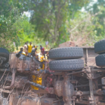 A trailer truck overturned on the Asukawkaw Mountain in the Oti Region, injuring three people in the early hours of Friday.