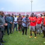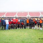 President John Dramani Mahama on Wednesday visited the Black Stars during their training session at the Accra Sports Stadium to motivate the team ahead...