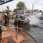 Mercedes Benz goes into flames in Kumasi rush hour