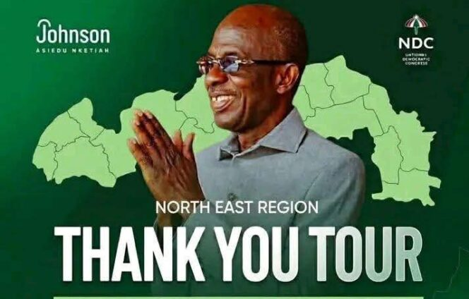 The National Chairman of the National Democratic Congress (NDC), Johnson Asiedu Nketiah, has suspended his scheduled “Thank You Tour” of the North East Region following heightened security concerns linked to a recent attack on a military convoy in Bawku.