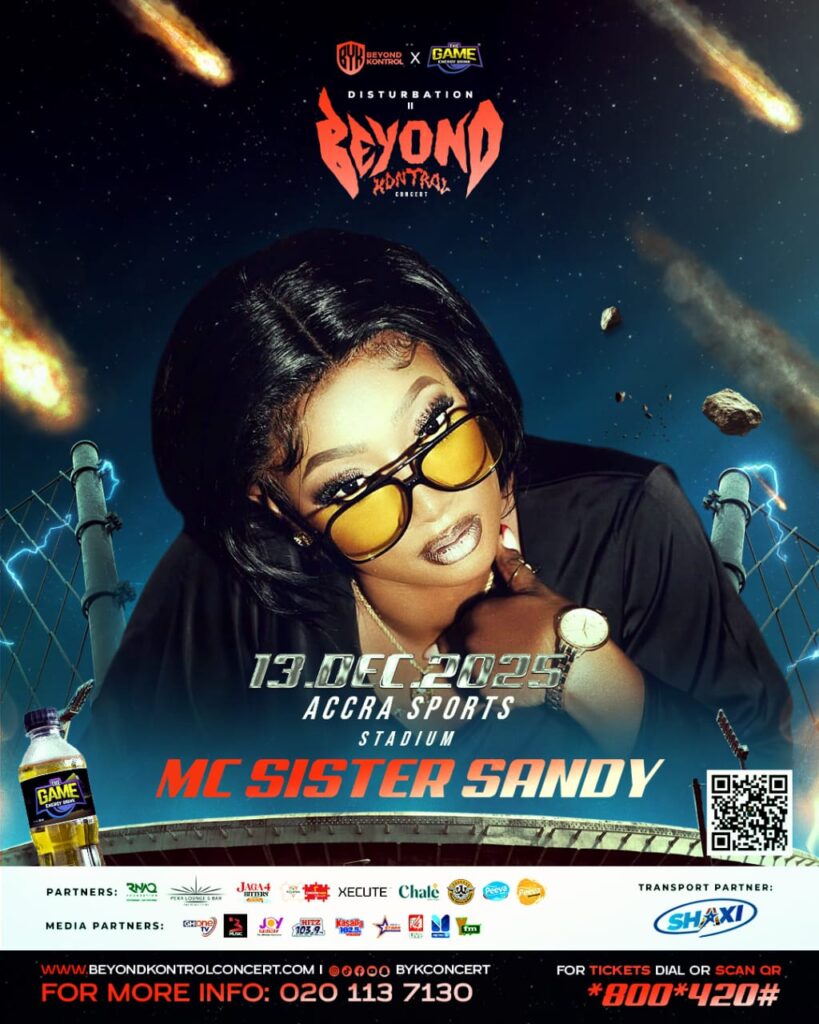 Adom TV’s vibrant presenter and award-winning master of ceremonies, Sister Sandy — affectionately known across Ghana as Sandy Bi Yɛ Guy — is gearing up to take center stage as the official host of Medikal’s BYK Concert on December 13, 2025, at the Accra Sports Stadium.