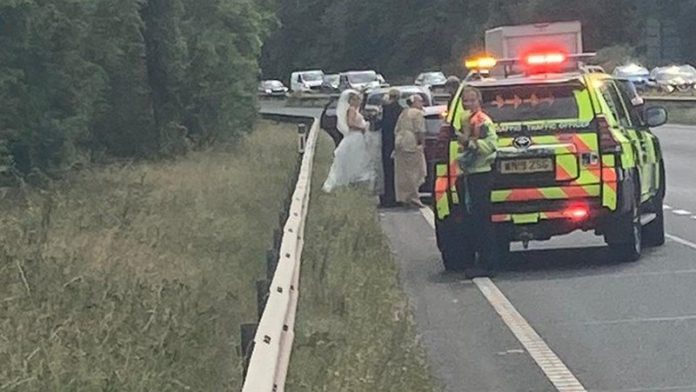 Police also posted about the incident on Twitter, including a photo showing the stranded bridal party at the side of the road.
