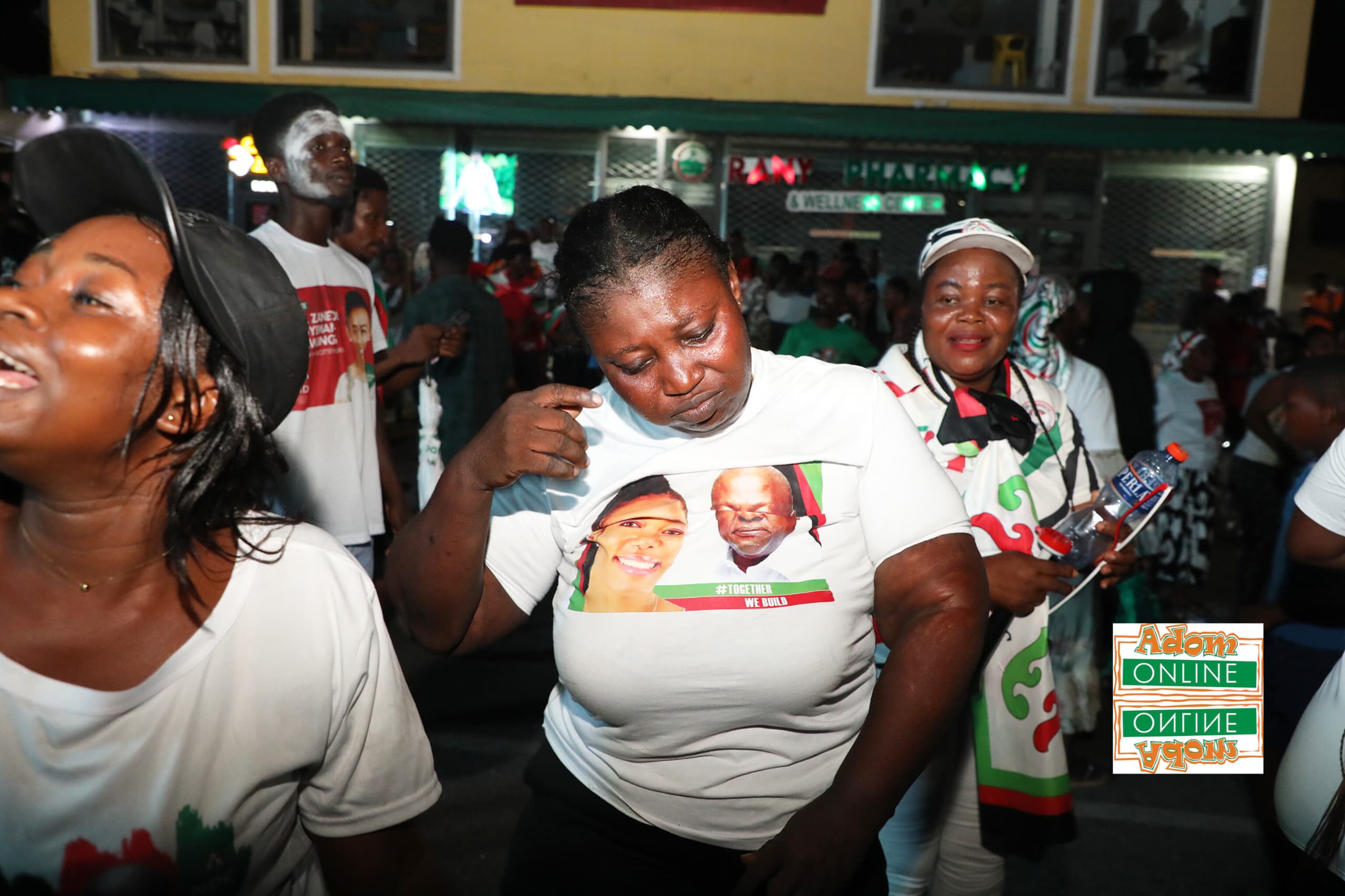 Hundreds of National Democratic Congress (NDC) supporters flooded the streets of the party headquarters in Adabraka on Monday evening, celebrating the victory of their presidential candidate, John Dramani Mahama in the 2024 election.