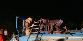 Three rescued after truck plunges into ditch at Adukrom Waterworks Junction