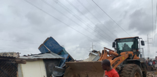 GRIDCo demolishes illegal structures under high tension lines at Bawaleshie