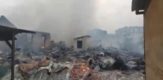 Fire destroys wooden structures at Madina Ritz Junction slum