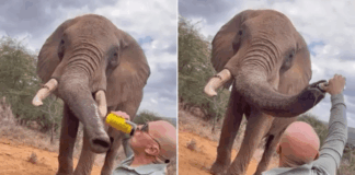 Tourist pouring beer down elephant’s trunk in Kenya sparks anger