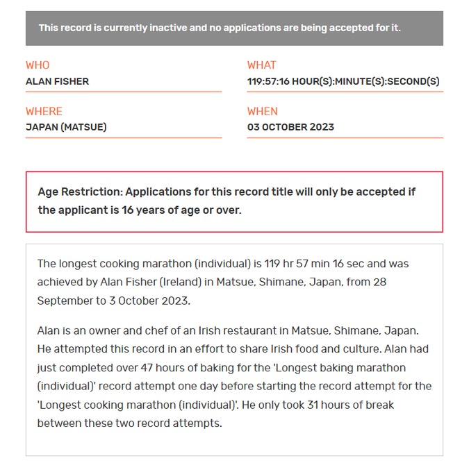 It is worthy to note that the record and attempter, Chef Smith is not yet listed on GWR’s official site, casting further doubts whether he applied in the first place.