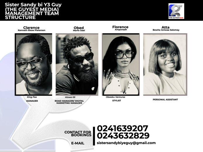 The expanded team brings together expertise in media production, digital strategy, brand management, and creative direction. The brand now includes a financier and an overall General Manager, supported by a manager, road and digital team, stylist, and a personal assistant. Together, they aim to strengthen the Sister Sandy brand, broaden its reach, and deliver high-quality content and experiences to audiences in Ghana and beyond.