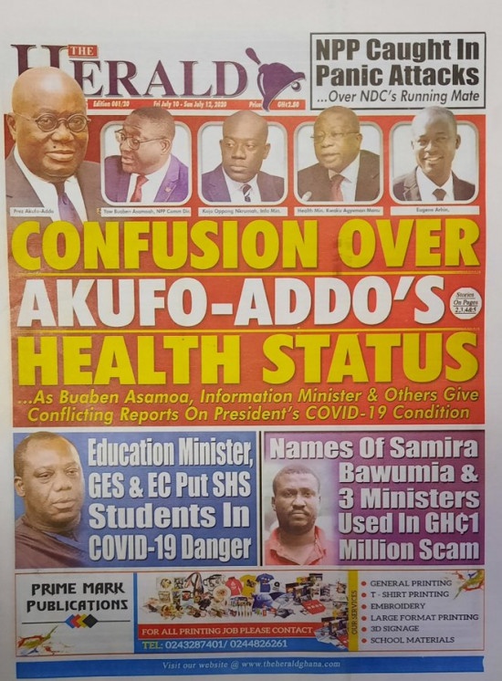 The Weekend’s Newspaper Headlines Newspaper Headlines July 11, 2020 11:12 am - Audio By Carbonatix FacebookWhatsAppTwitterTelegramEmailPinterestPrint Previous articleCoronavirus: Ghana records six new deaths; total now 135Next articleMahama tours registration centres in Volta Region today RELATED ARTICLES Newspaper Headlines Newspaper headlines: Monday, November 24, 2025 Newspaper Headlines Newspaper headlines: Friday, November 21, 2025 Newspaper Headlines Newspaper headlines: Thursday, November 20, 2025