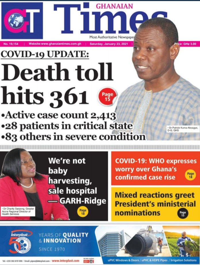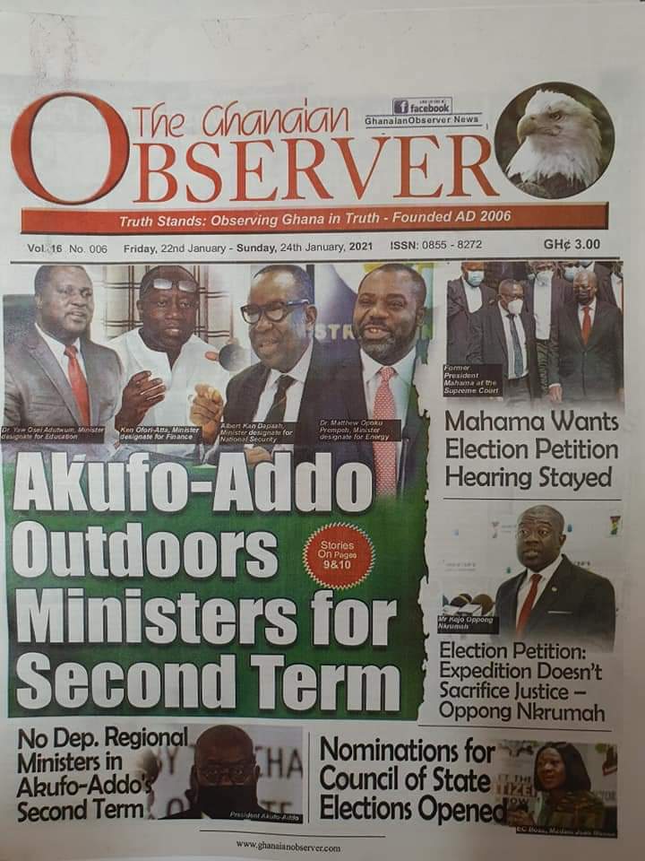 The Weekend’s Newspaper Headlines Newspaper Headlines January 23, 2021 9:09 am - Audio By Carbonatix FacebookWhatsAppTwitterTelegramEmailPinterestPrint Previous article2 injured after building collapse at Adabraka [Video]Next articleAdele reaches divorce settlement with her ex-husband RELATED ARTICLES Newspaper Headlines Newspaper headlines: Monday, November 24, 2025 Newspaper Headlines Newspaper headlines: Friday, November 21, 2025 Newspaper Headlines Newspaper headlines: Thursday, November 20, 2025