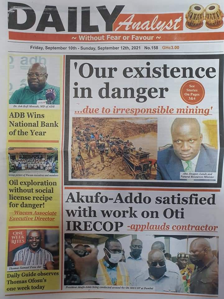 The Weekend’s Newspaper Headlines NewsNewspaper Headlines September 11, 2021 9:25 am - Audio By Carbonatix FacebookWhatsAppTwitterTelegramEmailPinterestPrint Previous articleZoomlion trains 51 women in heavy duty truck drivingNext articleAfghan journalists whipped for covering a women’s-rights protest [Photos] RELATED ARTICLES Local News Lands Ministry holds successful talks with Ewoyaa chiefs, residents on Lithium Agreement Local News Accra–Kumasi Expressway to offer alternative route, not replace existing Highway – Roads Minister Sports Edudzi Tameklo commends NPA Ladies Football Team for trophy triumph over Ghana Gas