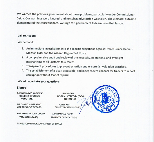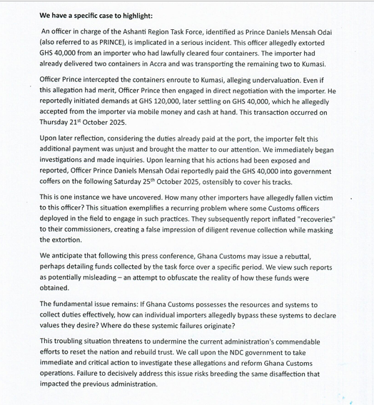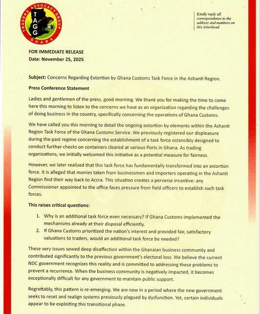 According to the groups, funds collected from businesses are allegedly sent back to Accra, creating pressure on Customs officials to sustain such operations.