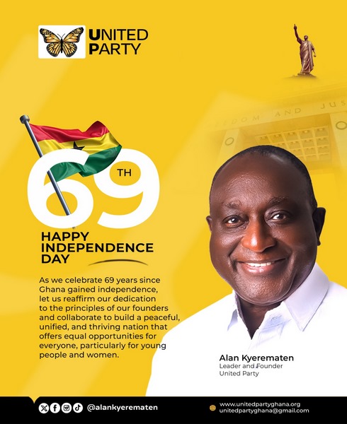 As Ghana marks its 69th Independence Anniversary, the United Party (UP) has called on all Ghanaians to reaffirm their commitment to the founding principles of the nation and work together to build a peaceful, united, and prosperous country.