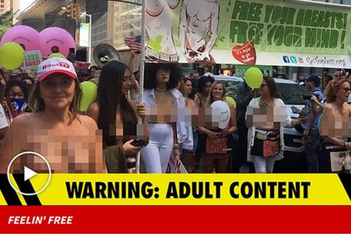 A group of 100 or so people marched down the streets in New York with their tops popped off and their boobs hanging out freely all in the name of equality.