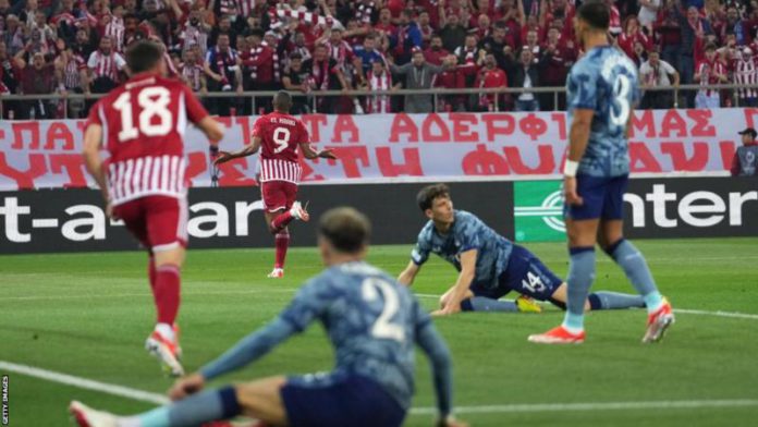 Ayoub El Kaabi – who scored a hat-trick in the first leg – opened the scoring in Piraeus, tapping in Marin Ruiz’s low cross in the 10th minute against the run of play.