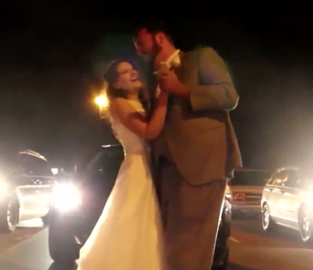 The bride and groom ― and everyone else ― were stalled for an hour before another motorist spotted the bride’s wedding dress and suggested they do their first dance right there on U.S. Route 35, according to local station WLWT.
