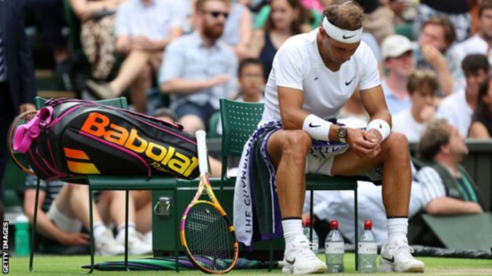 Nadal, 36, had strapping on his abdomen during his fourth-round match but was in visible pain from the injury against Fritz.